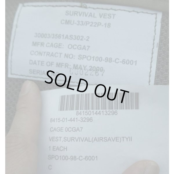 アメリカ軍実物のCMU-33/P22P-18サバイバルベスト(VEST, SURVIVAL(AIRSAVE)TYII)です。