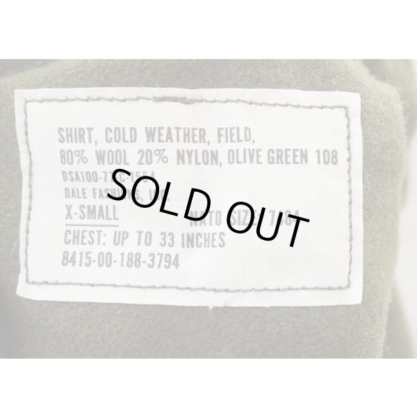 表記サイズXSのアメリカ軍実物のM-1951(M51)ウールシャツ(SHIRT, COLD WEATHER, FIELD, 80% WOOL 20% NYLON, OLIVE GREEN 108)です。