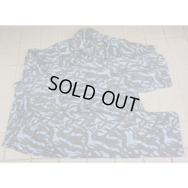 ウズベキスタン国家警察・内務省軍実物のブルーリードパターン迷彩のジャケットとパンツのセットです。