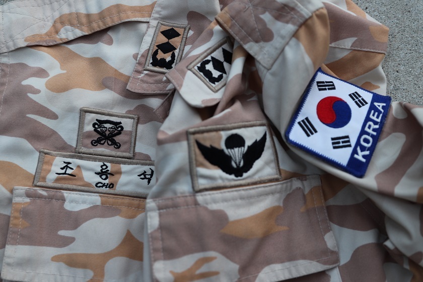 韓国軍ザイトン部隊デザート迷彩ジャケット憲兵科中尉パッチ付き [戻る]