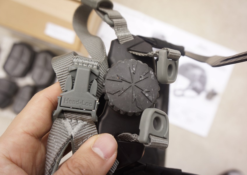 ACH・MICHヘルメット用のキットで、標準のパッドやチンストラップと取り換えて、付属のネジで取り付けるものです。