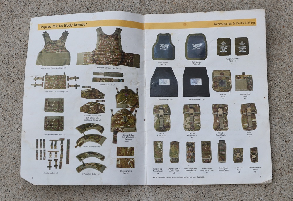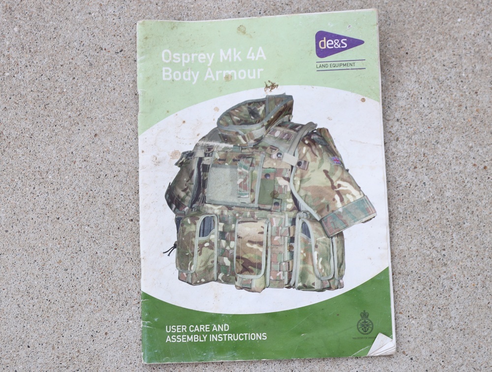 イギリス軍実物のオスプレイmark4Aボディーアーマー用マニュアルです。