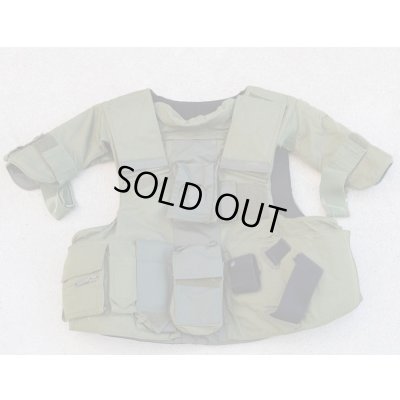 状態:中古。ドイツ連邦軍実物放出品。5枚目の写真のように左肩のショルダーアーマー部分の表面に穴があり、その周りにマジックでの書き込みがあります。ショルダーアーマーを固定するためのエラスティックバンドのゴムがだいぶ伸びています。そのほかの箇所に破損はないので、着用自体は問題ありません。