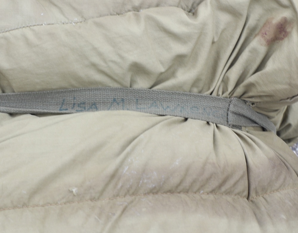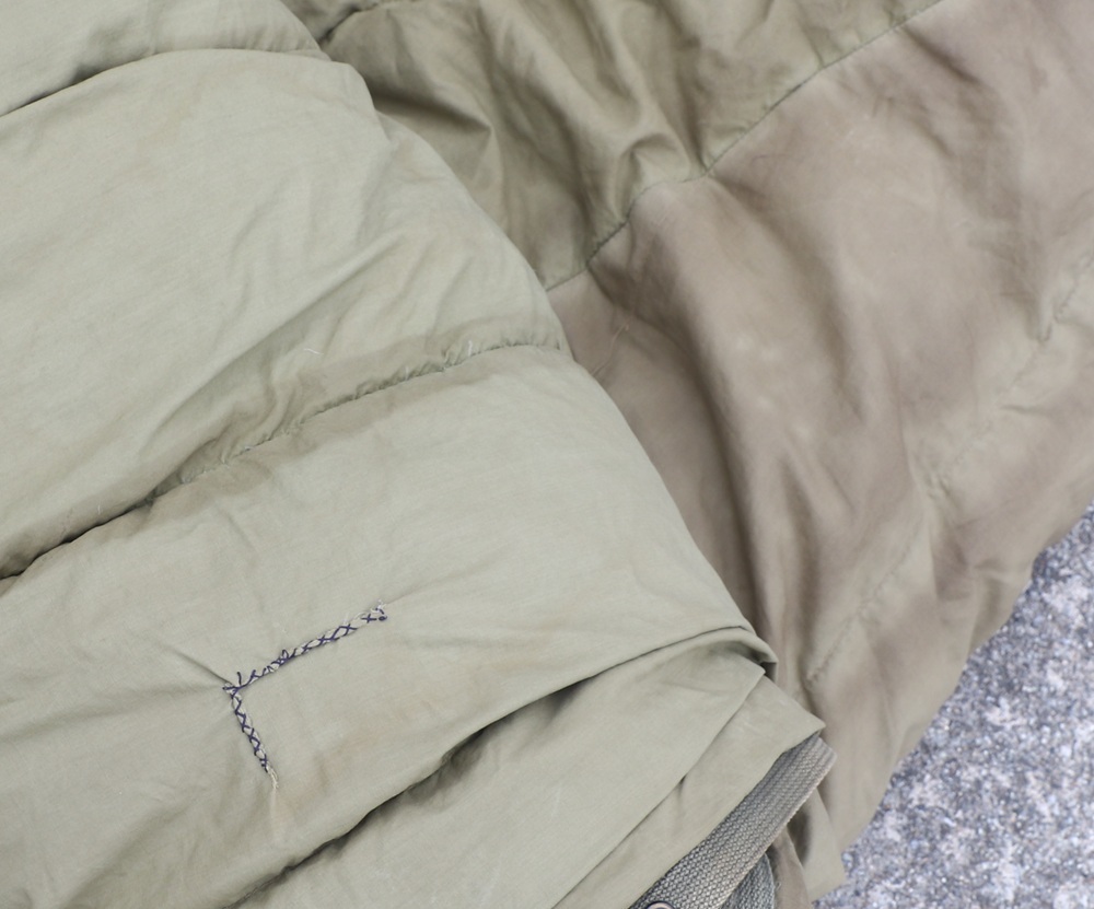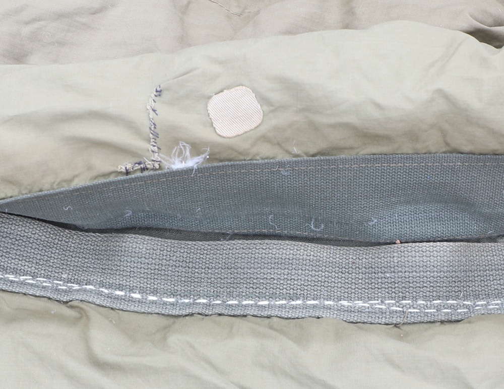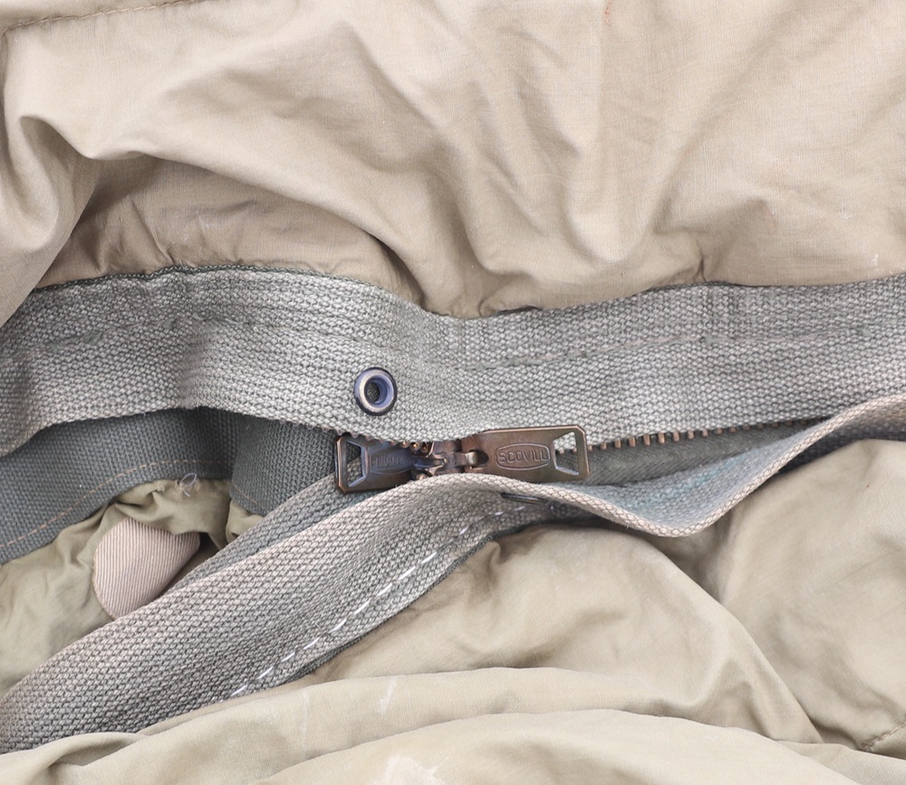 状態:中古。米軍実物放出品。前述の様にかなり退色しています。全体的に使い込まれており、シミや補修があります。ジッパーのスライダーのベース部分の生地と縫い糸からすると、ジッパーのスライダーが片方交換されているようです。ストラップに文字の書き込みがあります。ジッパーの取っ手のストラップが欠損していますが、開閉にそれほど問題はありません。