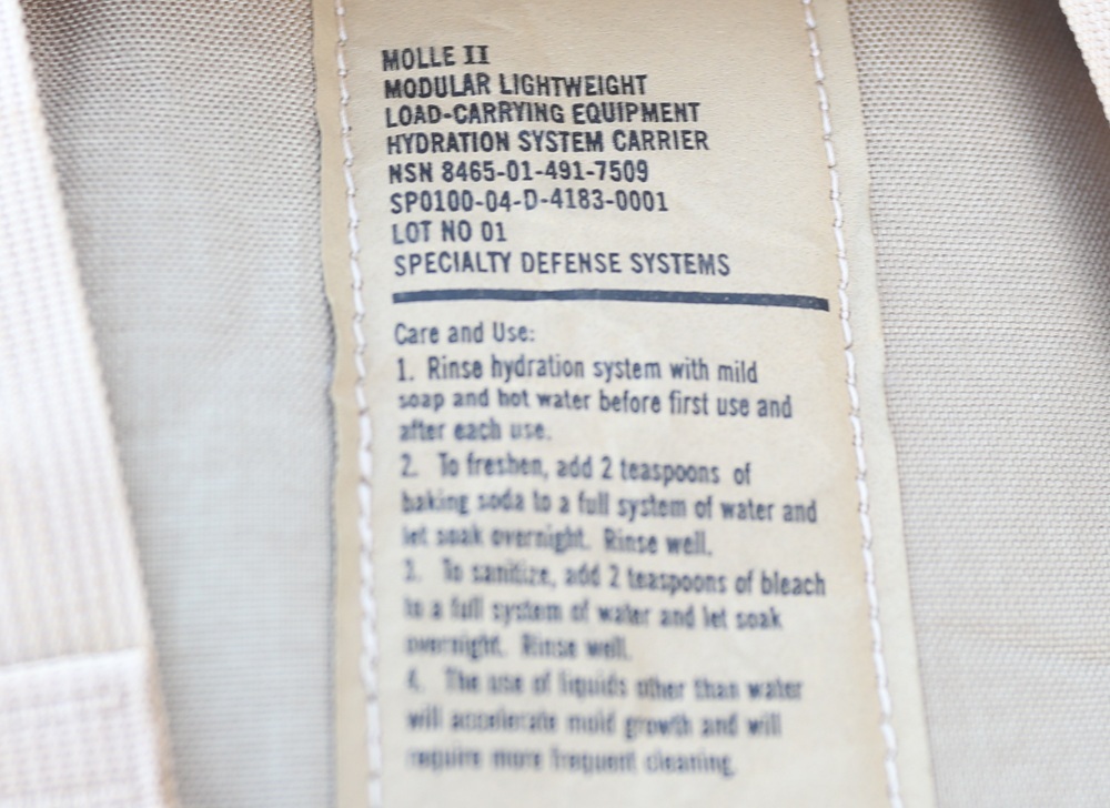 NSN:8465-01-491-7509(ハイドレーションシステムとしてのNSNではなく、パックのNSNですが、前述の様に表記ミスの可能性があります)