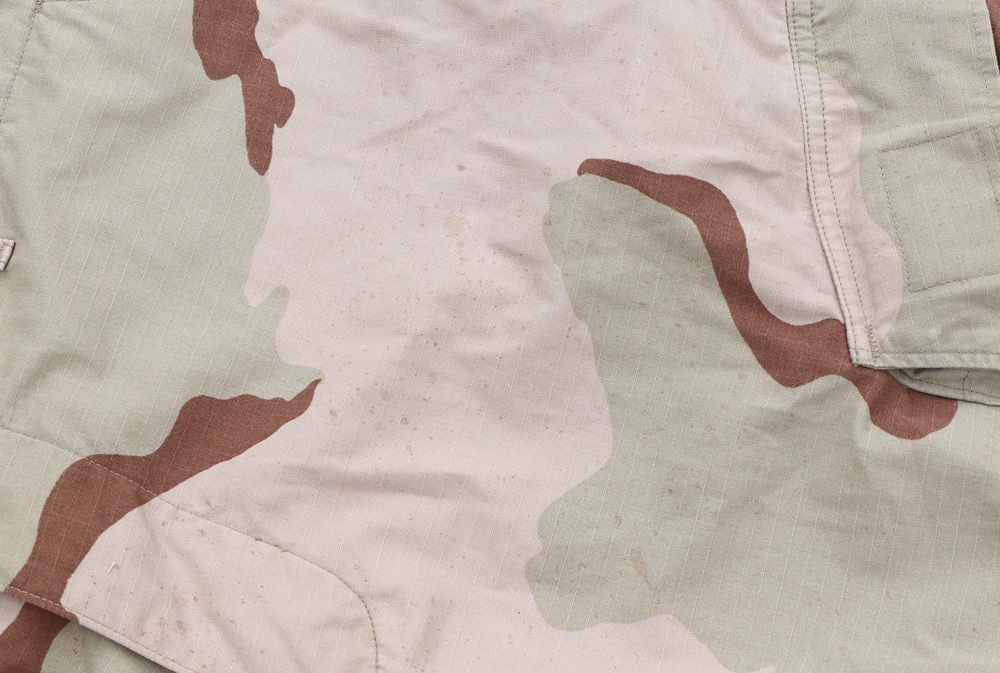 状態:中古。米軍実物放出品。全体的に茶色いシミがあります。迷彩の色合い的に遠目にはあまり目立ちません。多少のベルクロの劣化はありますが、破損はやパーツ欠損はない状態です。
