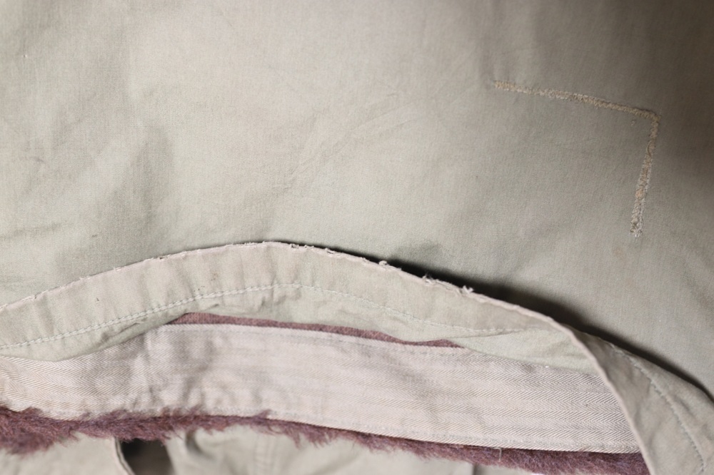 備考:ライナーを取り外した状態やライナー単体での撮影も行いたかったのですが、古いもののため、金属ボタンの破損を懸念し、断念しています。ライナーの着脱の際はお気をつけください。