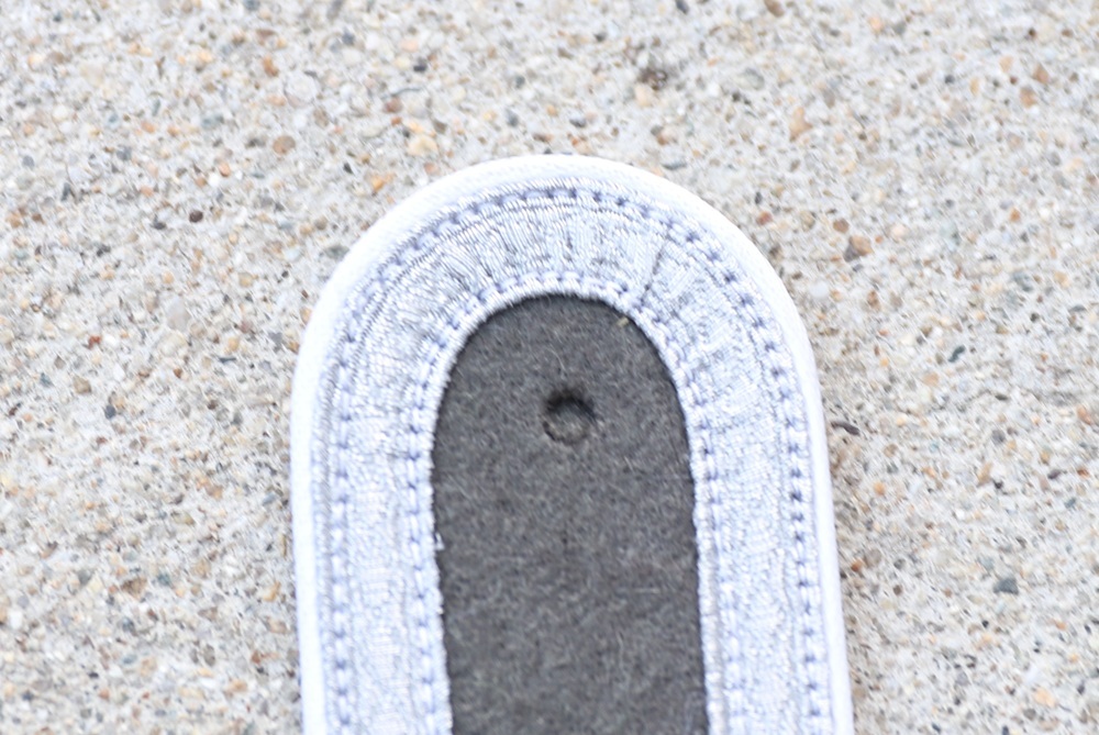肩章用のボタンと紐を使って被服の両肩にとりつけて使用するものです。