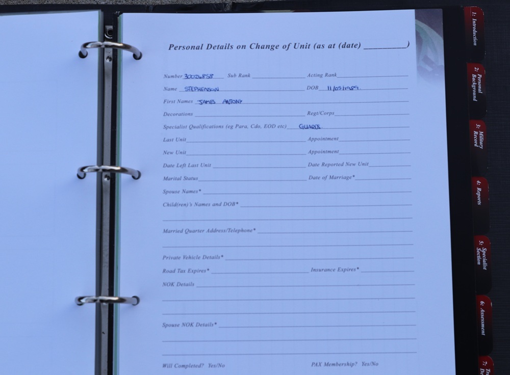 イギリス軍実物の個人発展記録(Personal Development Record)のファイルです。