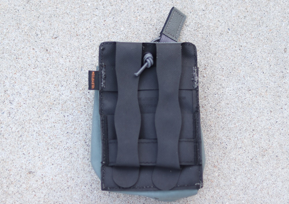 上部のコードでマガジンを保持する方式のオープントップマグポーチで、SR-25やM14などの7.62mm x 51mmNATO弾の20連マガジンを1本収納できます。