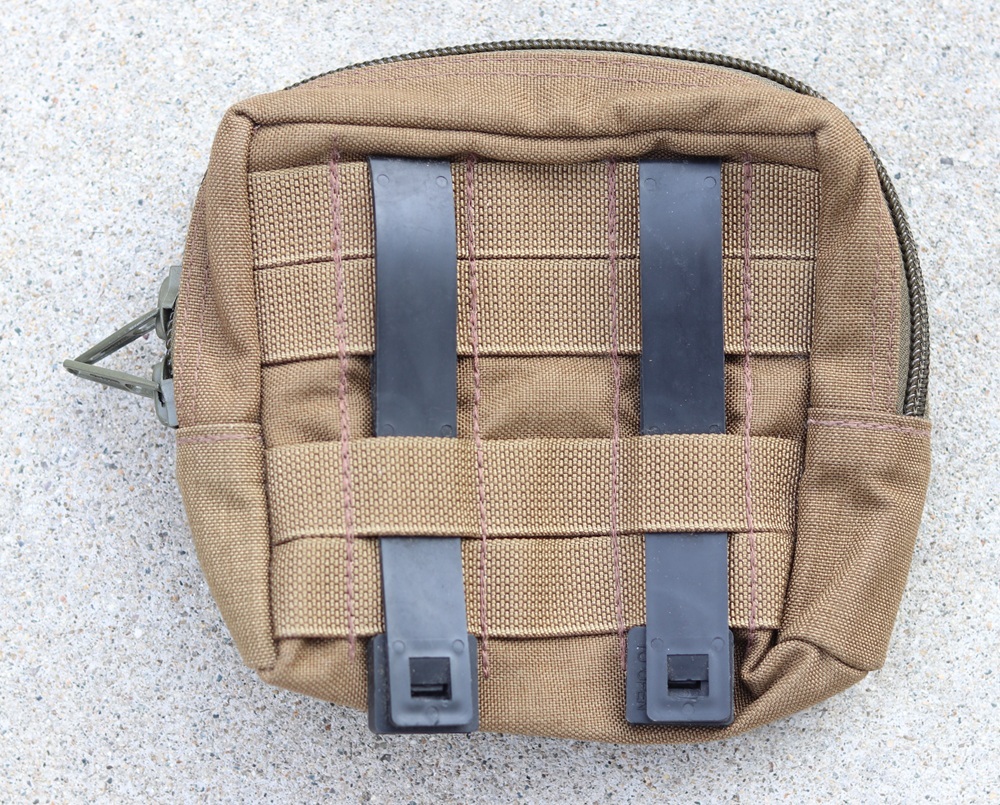 ジッパー開閉式のユーティリティポーチで、背面はMALICEクリップが付いているため、MOLLE式のウェビングが付いた装備に取り付け可能です。