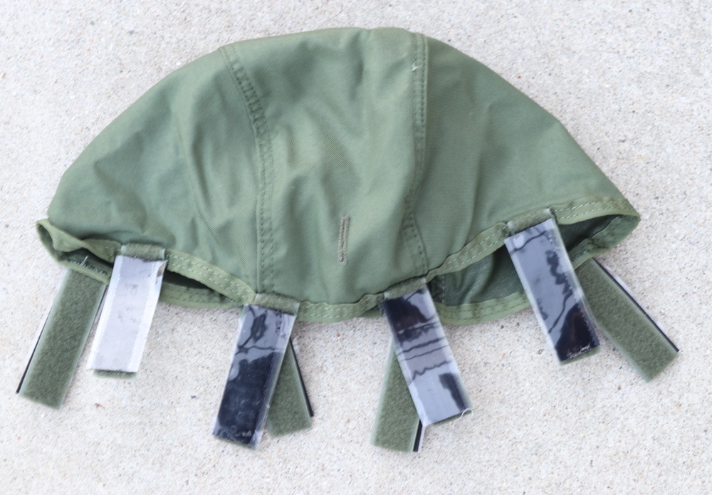 官給品やMSA製のヘルメットカバーよりも簡略化されたような作りで、フラップや擬装用の切れ込みがない仕様です。