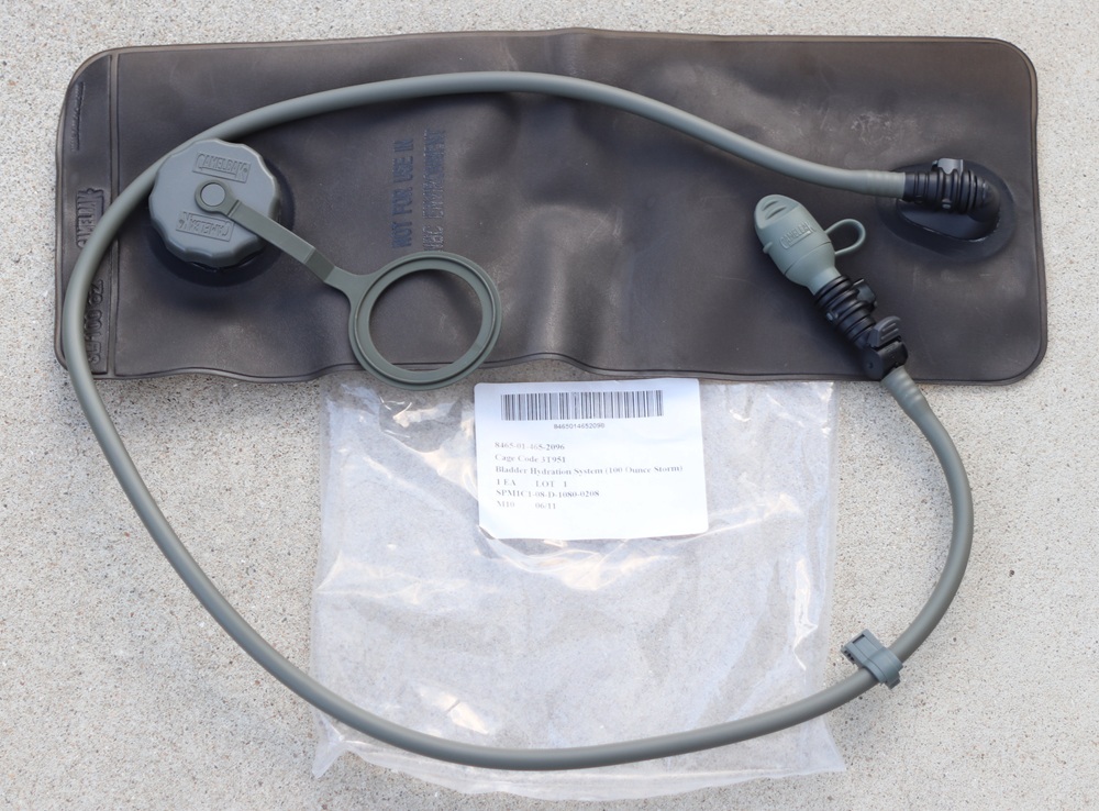 アメリカ軍実物のCAMELBAK製実物ハイドレーションブラッダーとチューブ部分とバルブ部分(飲み口部分)のセット(Bladder Hydration System (100 Ounce Storm))です。