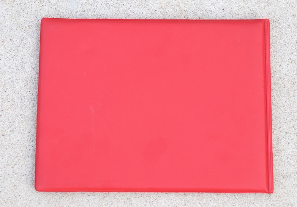 ホルダーの表紙はビニールレザーのような樹脂素材で、クッション性のある素材が埋め込まれた仕様となっております。