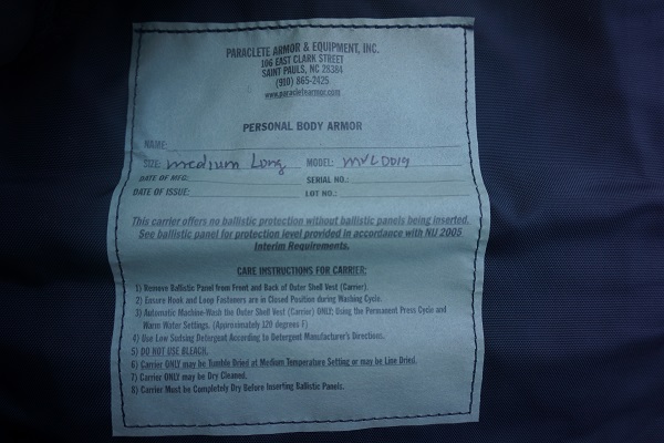 パラクレイトMVLボディアーマー黒Medium-Long新品
