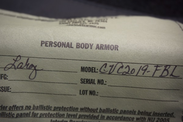 前後にCVCカットのソフトアーマーとプレートを入れて使用できますが、付属していません。